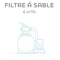 Compris dans ce pack | Filtre à sable / Vannes d’arrêt / Bâche et tapis de sol / Échelle de sécurité. |