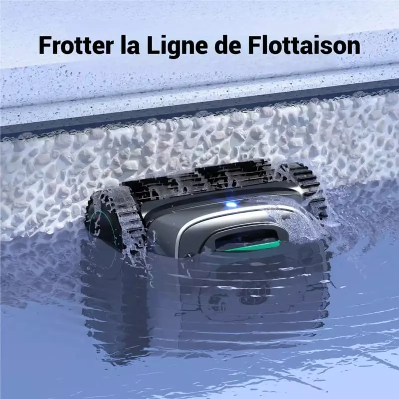 Le robot s'adapte à toutes les surfaces dont les carreaux, mosaïques ou liners. Même pour les piscines hors-sols rigides ! Il est adapté aux piscines de 120㎡-150㎡ et va jusqu'à une profondeur de 3 mètres.
