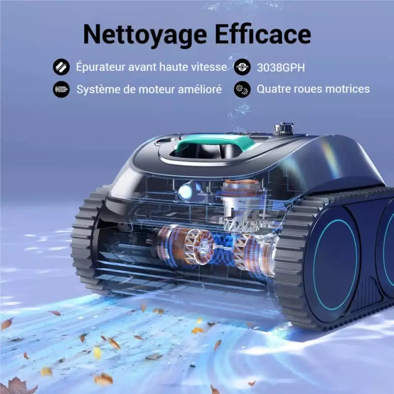 Préprogrammez facilement votre mode de nettoyage préféré directement depuis votre smartphone. Avec notre technologie avancée, le robot peut être personnalisé pour s'adapter à votre piscine, garantissant un nettoyage efficace et précis. Profitez de 2 heures d'autonomie pour maintenir votre piscine étincelante toute la semaine. Simplifiez votre routine d'entretien et profitez d'une piscine toujours impeccable avec notre robot nettoyeur de piscine intelligent.