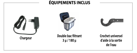 Équipé d'une batterie Lithium-lon haute performance, il néttoie le fond, les parois et la ligne d'eau. Sa capacité d'autonomie peut aller jusqu'à 3 heures.Grâce a ses brosses avant et arrière il peut capturer les gros ainsi que les petits débris. Pour finir, ses capteurs intelligents lui permet des trajectoires plus optimisées et méthodique, pour un nettoyage complet de votre piscine.